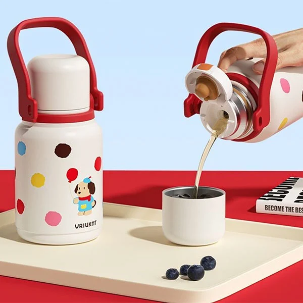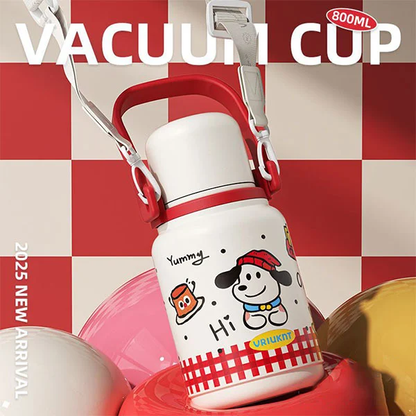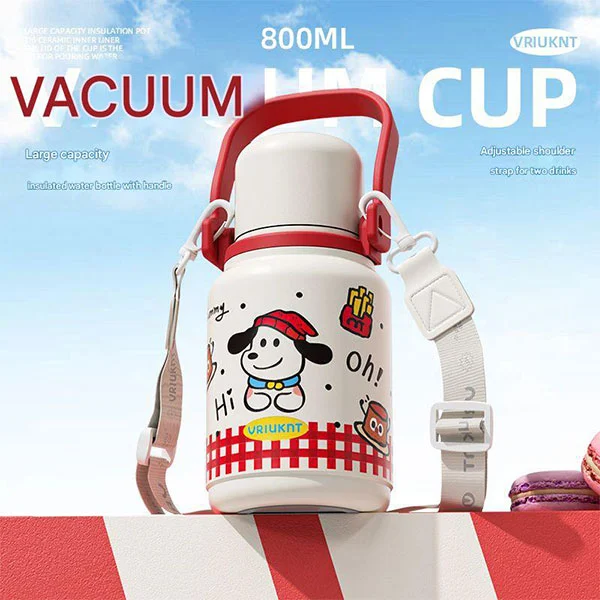 Η μονωμένη φιάλη κενού μπορεί να χρησιμοποιηθεί ως απαραίτητο μπουκάλι νερού για τα παιδιά για να πάνε στο σχολείο ή στο ταξίδι, το οποίο είναι πολύ κατάλληλο για παιδιά επειδή τα χέρια τους είναι μικρά και οι ιμάντες μπορούν να λύσουν τα χέρια τους