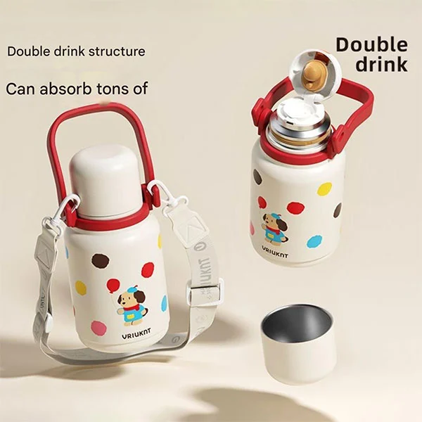 Το Dishher Safe Vacuum Flask διαθέτει μεγάλη λαβή και διαθέτει ιμάντα ώμου, κατάλληλο για παιδιά ή ενήλικες να σηκώνουν και να ελευθερώνουν τα χέρια τους. Το καπάκι μπορεί επίσης να χρησιμεύσει ως κύπελλο νερού