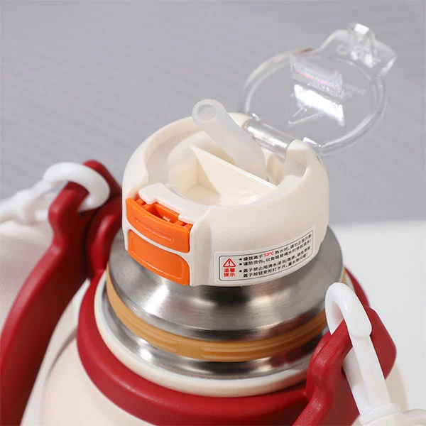 Το καπάκι του ποτηριού τριών σταδίων είναι εξοπλισμένο με ένα επαναχρησιμοποιούμενο καλαμάκι για εύκολη ρουφηξιά και ένα φαρδύ στόμιο για εύκολη κατανάλωση. Μας αρέσει ιδιαίτερα να χρησιμοποιούμε καλαμάκια κατά την οδήγηση. Αυτό το θερμός σάς επιτρέπει να εστιάσετε εύκολα το βλέμμα σας στο δρόμο ενώ απολαμβάνετε το ποτό σας. Θα πρέπει να σημειωθεί ότι η περιστρεφόμενη συσκευή στο καπάκι του κυπέλλου δεν είναι σφραγισμένη και αυτό το καπάκι του κυπέλλου δεν είναι πλήρως στεγανό.